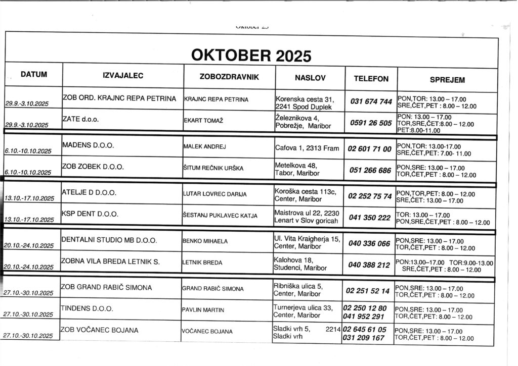 Obveščam vas, da bo zobna ordinacija zaprta do 6.10.2025.